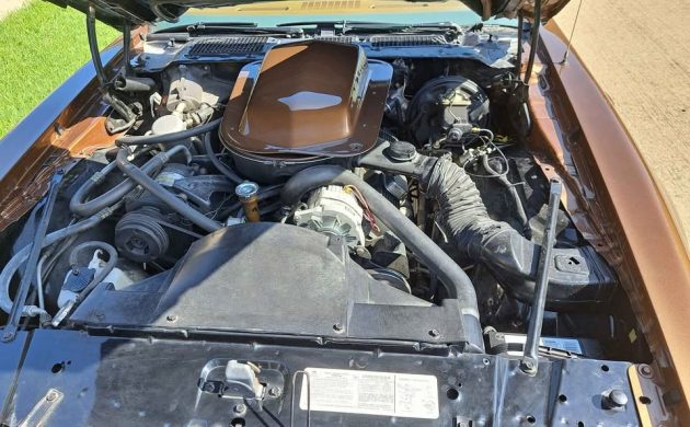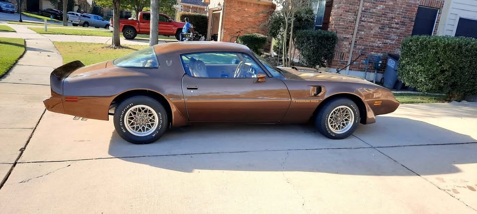 Pontiac started offering Trans Ams in various shades of brown starting in 1977. My favorite is 1978 which was called Chesterfield Brown and almost looks copper. It has some metallic flake in the paint. In 1979, Pontiac offered Code 69 Heritage Brown which also looks good. This car is offered here on Facebook Marketplace for $25,000. The Trans Am is located in Little Elm, Texas which is north of Dallas. The car has the base engine and automatic transmission and reports an odometer reading of 59,000 miles. The car has only been listed for 2 days.