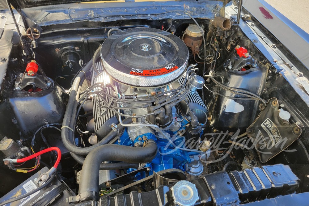 The seller’s car is being made available from a private collection and has the customary 289 cubic inch Ford motor, adjusted to 306 Hp in Hi-Po trim, with the Hertz automatic. We’re told the engine is painted in correct Ford blue colors, which suggests it may have been rebuilt, but has the proper Shelby-spec high-rise intake and 4-barrel carburetor are present (I guess this one wasn’t “refurbished” by Ford?).