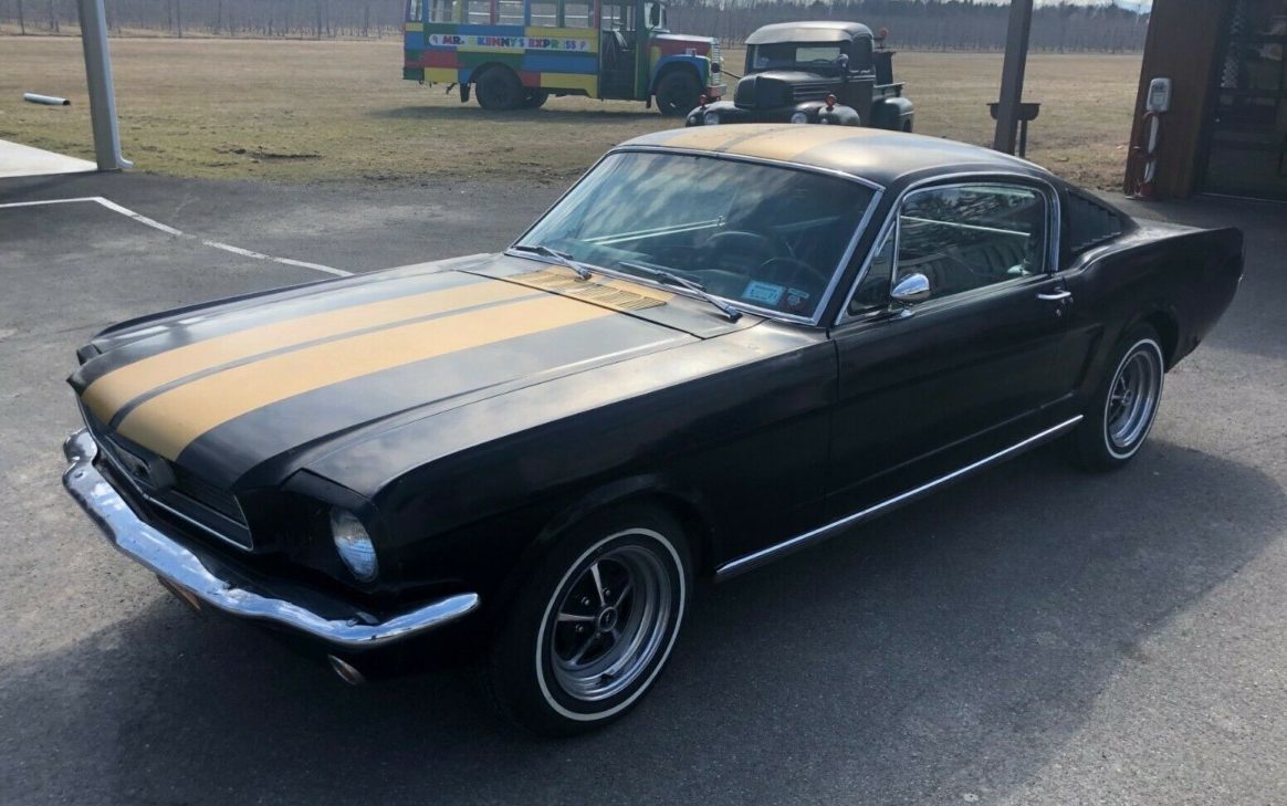 Back in around 1970 I bought a 1965 Maroon Mustang. It was only the base model with 3 speed floor shift and the 289 2 barrel carb with the ford mustang hubcaps with the 3 point spinner faux knock offs. I remember installing extra taillights for that Shelby look, Hood pins and ran an induction hose from the air cleaner to a 21/2 inch hole I put under the wiper blade grill. I also added rocker panel G T stripes to dress it up some what. This guy that has this black fastback might as well get a pro body shop and repair that terrible body work and the floors etc. and repaint it. Also get the missing centers for the wheel rims. He neglected to steam clean the engine and compartment in all those years he said he had the car. go figure. You might as well finish what you started unless there’s something seriously wrong hidden some where and he expects top dollar for this basic 6 banger.