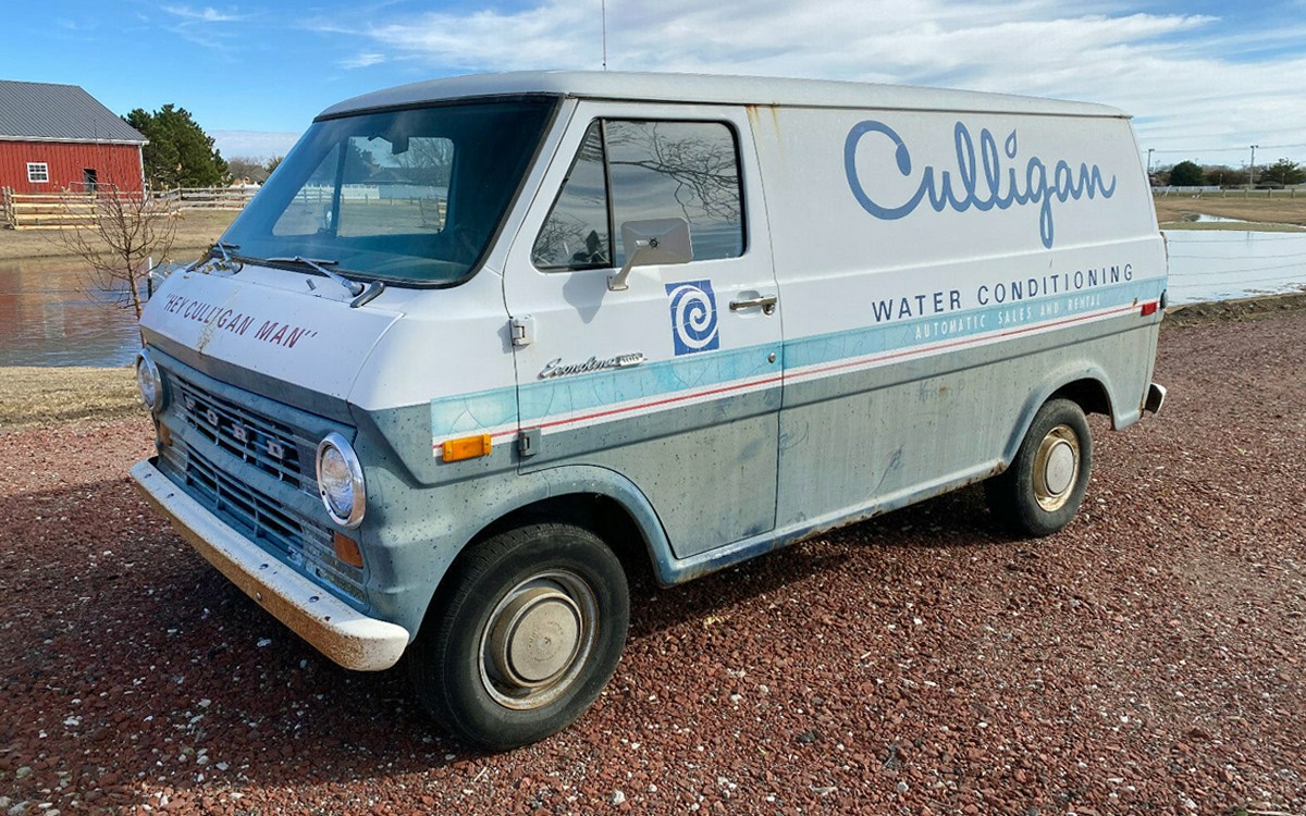 Hey Culligan Man! Those three words are ones that most of us have heard in our lifetime and it’s hard to find such a memorable catchphrase as that, and now you won’t be able to get those three words out of your head. This van is incredibly cool and it’s listed here on eBay in Hays, Kansas in a no reserve auction with a current bid price of just $860.