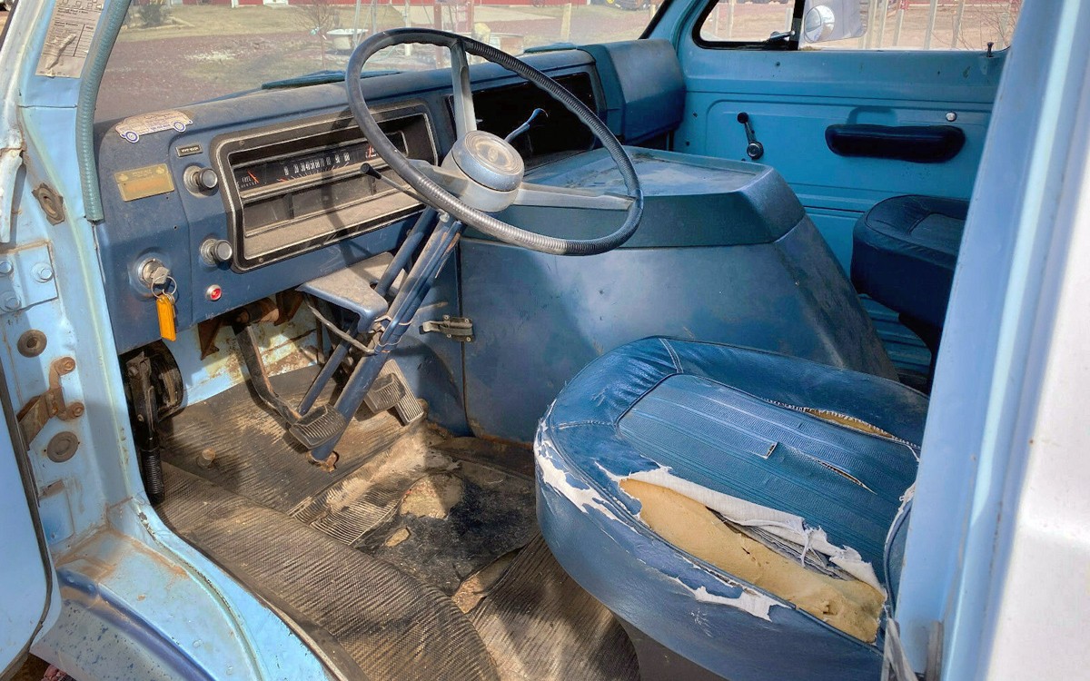 The second-generation Ford E-Series Econoline vans came out as 1969 models and they were made until the 1974 model year. Their introduction was delayed due to a 1967 union strike and Ford decided to basically forego the 1968 model year and call them 1969 models which has to be a little unusual. You can see that the interior needs a little help but seats are easy enough to fix. This one has a three-speed manual transmission with a column shifter, that’s what my old Sears Dodge van had.