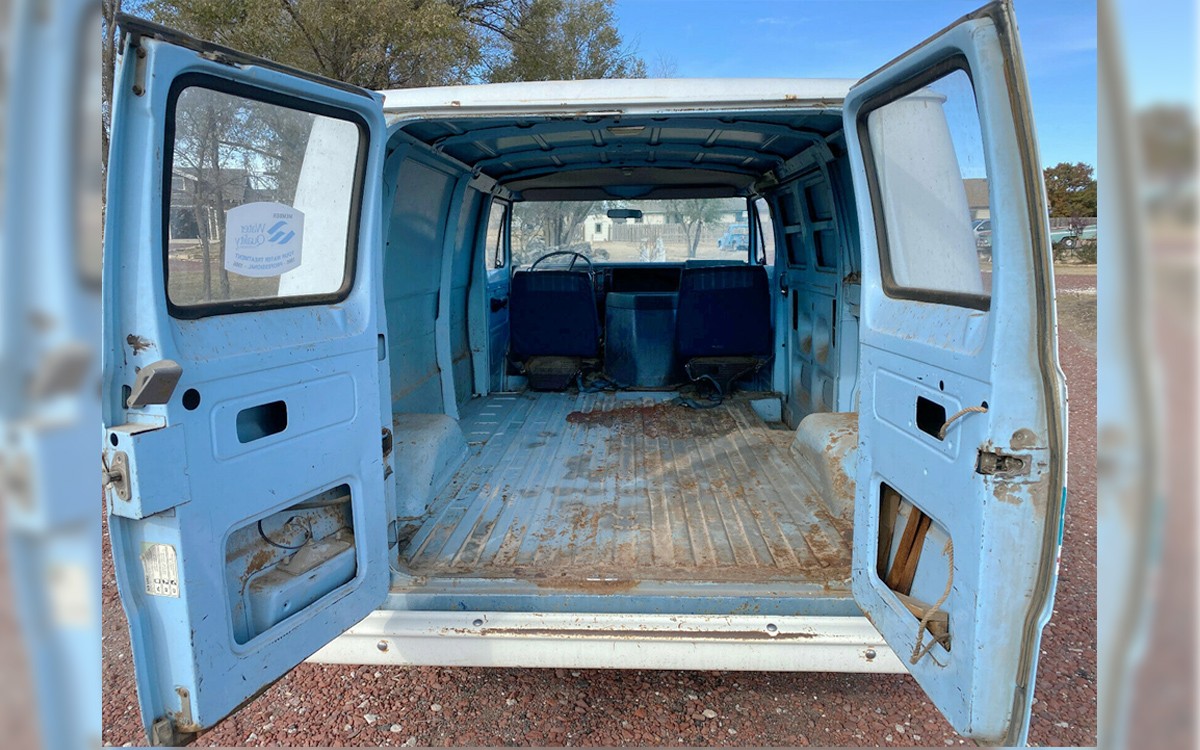 I think the seller has done a great job on the photos here. They show almost every angle and part of this van other than underside photos which would have been the piece de resistance. I like the dusty barn find-looking photos and then some are cleaned up but not too much. I drove an old Dodge former Sears delivery van for years but they took the logos off of it before I got it. I don’t know what the protocol is for driving a van with trademarked names and logos on them but maybe if a person doesn’t try to sell water softeners it might be ok?