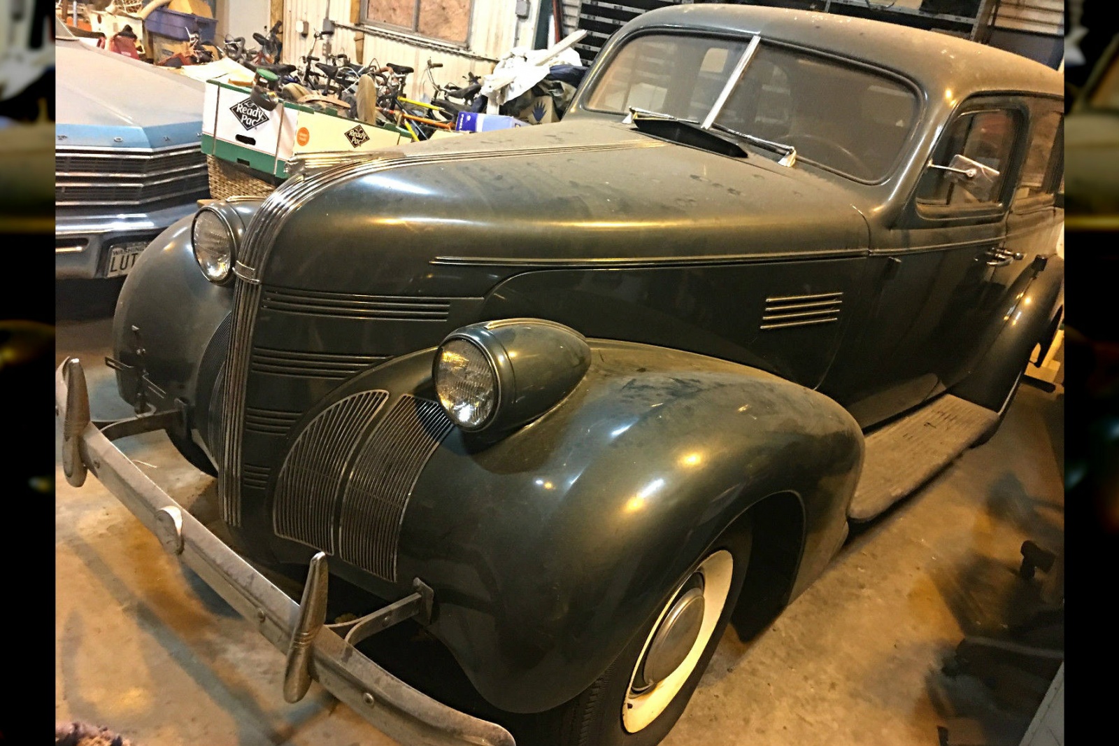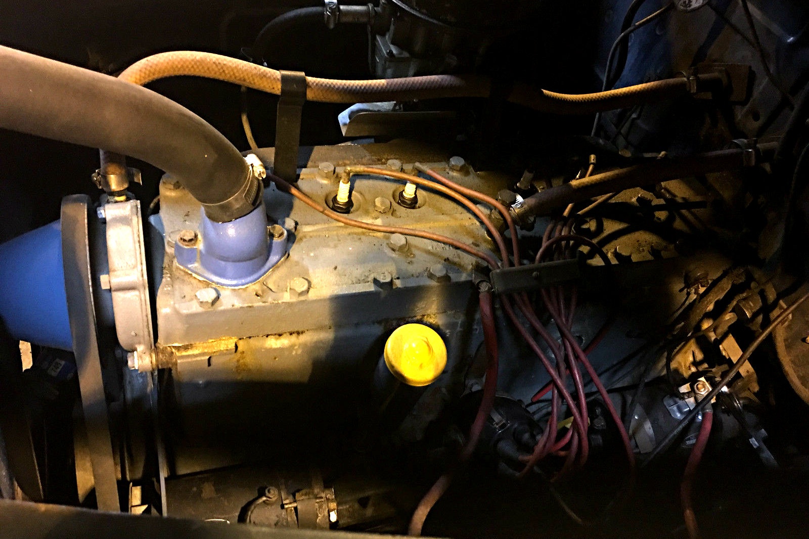 A bit difficult to see, the flat head 6 cylinder engine looks to wear relatively recent paint, and all of the hoses, wires, and belts appear fresh. There is no word as to whether the fuel or coolant has been drained, but it would seem this engine would be easy to revive. The only major concern with running the engine is that there are some bare wires under the dash according to the seller. My guess would be that some mice nibbled the sheathing off of the wires. A wiring harness is included with the car, to aid in putting this beauty back on the road. Beyond that, I am certain the brake system and fuel system will need some assistance as well.
