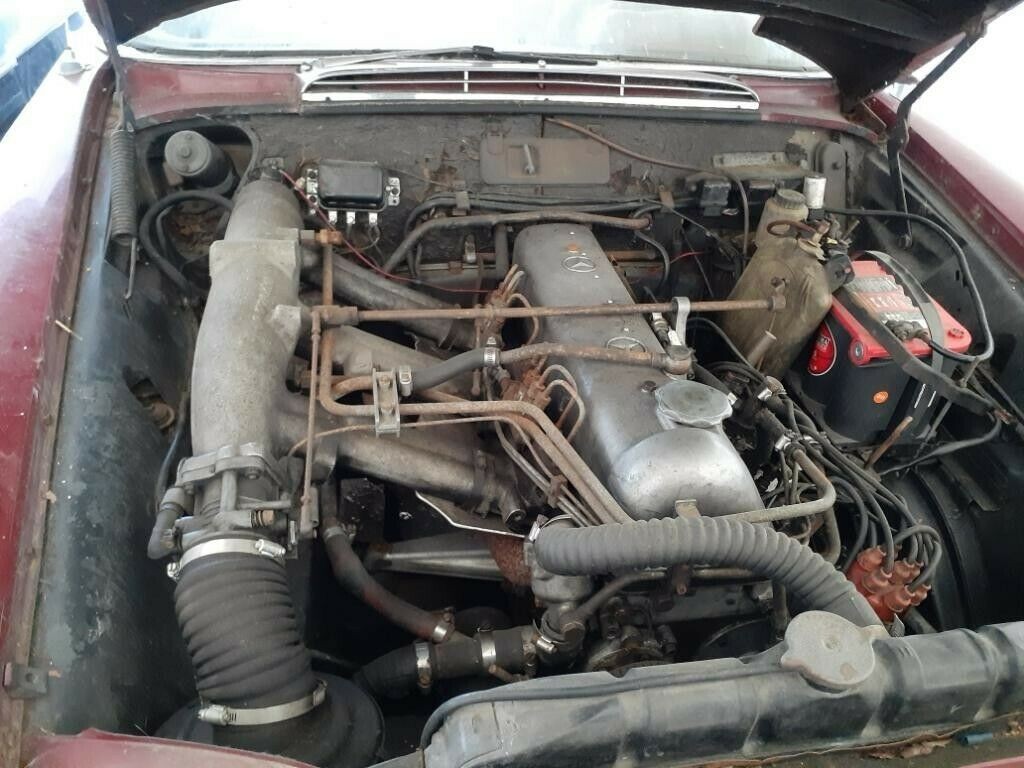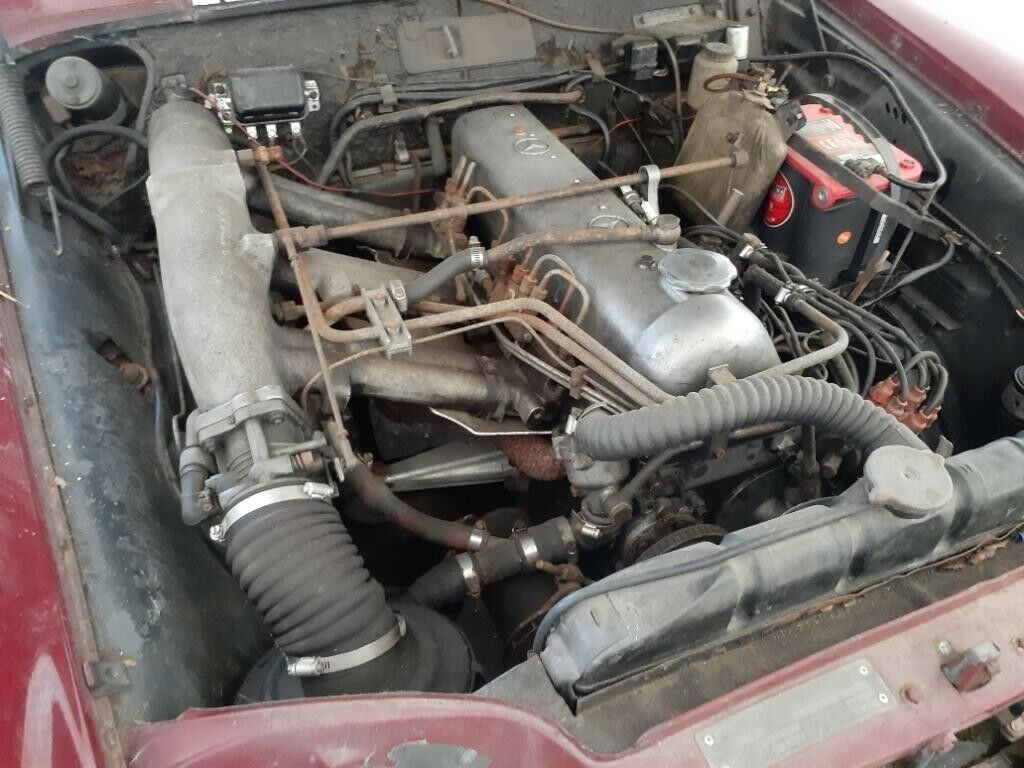 The good news is that the car was undercover, in a dry garage, sitting on flat tires. The photos are terrible, and the car could indeed be quite rusty, but only one spot of the surface variety is visible. The paint even looks like it could be buffed up. I think it’s actually a 220 SE, with the “E” denoting fuel injection. The “B” designation was for the sedans.