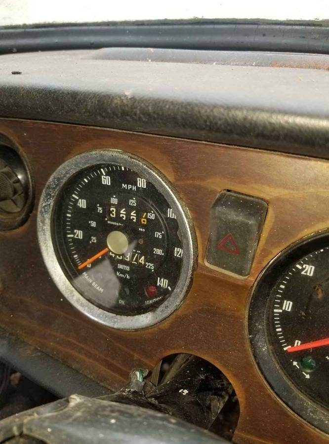 Both side sills rotted out, common on the Spitfire and GT6. Rear wheel arches need rust repair as well. But the GT6 specific bodywork seems intact. This isn’t a $3500 car as it sits, but someone will probably take a chance on it. This would be more like a $2K parts car / project in my area. Definitely repairable in the driveway or garage of a home wrencher whom wants to learn some easy welding. Body patch panels are available inexpensively. It could be a good project if intact.