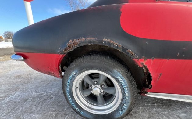 Structurally, the seller reports that the frame and rockers are solid, though the passenger-side floor pans will need attention. Rust is present, which isn’t surprising given how long the car sat exposed to the elements, but it’s described as a car you can still enjoy driving in its current state. That balance — usable now, restorable later — is exactly what many enthusiasts look for.