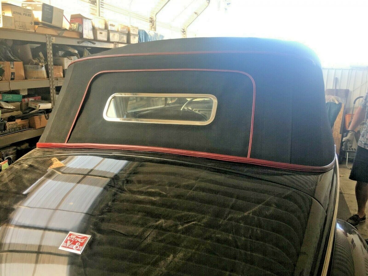 Below the layer of dust, the Black paint on the Ford looks to be in really nice order. It appears as though the car has remained under some form of cover during its 5-year hiatus, and this would help to explain why the dust coating remains relatively light. The seller says that there are no signs of any previous rust or accident repairs with the car, and it remains rust-free now. He supplies some photos of the vehicle’s underside, and it is spotlessly clean, with no signs of even a hint of surface corrosion. All of the external trim and chrome is present, and as is the case with the panels and paint, it all appears to be in great condition. One interesting deviation from standard is the soft-top. The late owner chose to fit the car with a LeBaron Bonney top, and the combination of black material and red piping really sets the rest of the car off nicely. Once again, the impressive condition continues here, with the top fitting nicely, with no signs of any damage or issues.