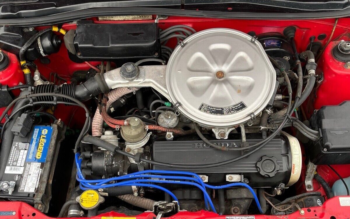 The engine is Honda’s HF (more letters), which means High Fuel efficiency. It’s a 1.5-liter inline-four and Honda fitted this aluminum block engine with a 1984 CVCC (more letters) – which stands for Compound Vortex Combustion Chamber – head and these cars are known for getting between 40 and 48 mpg in real-world driving conditions. It would have had 58 horsepower and 78 lb-ft of torque. It sent the power through a five-speed manual to the front wheels. The seller says that this car runs and drives great and it’s been repainted at some point. Have any of you owned a CRX of this era?