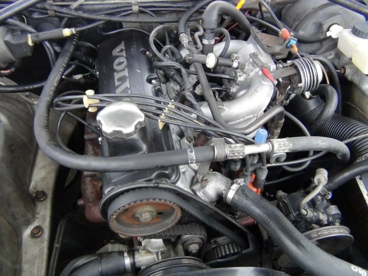 [BTW the timing cover wasn’t in the goodie box. But EVERY OTHER BIT OF KIT EVER SWAPPED OUT IS. The–I assume-Volvo superfan that owned her replaced every switch and knob in the IP, for instance, because the paint was worn from use. They all work fine, just not aesthetically.