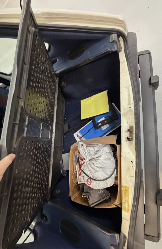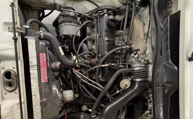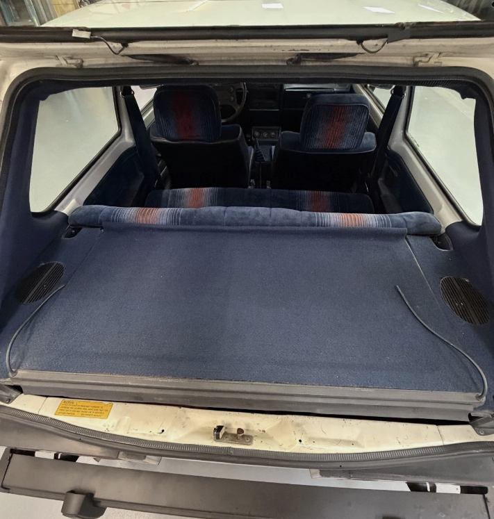 The interior is described as “really, really good,” but the carpets are clearly worn, and some surfaces are faded. The dash has survived well enough, and the headliner was repaired. I don’t like the gearshift knob, but I do like the groovy seat cloth. Very leftover ’70s. The seller notes that the HVAC system has been disconnected, and the radio does not work. The beauty of the hatchback is the cargo space under the rear glass, but also a cubbyhole in the “trunk”, where a few spare parts are kept.