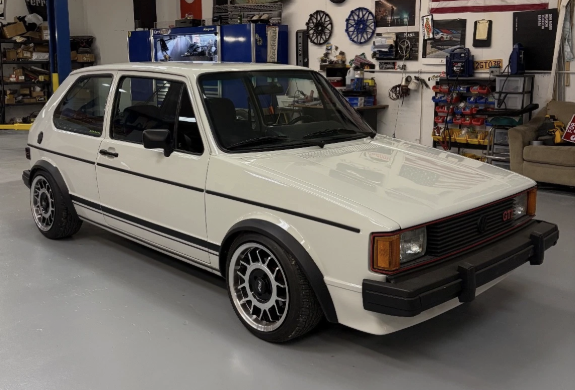 The GTI came along in 1976 overseas and 1983 in the US, shoehorning between the “sports car” and “economy” genres to popularize the “hot hatch”. Finally, we could enjoy running errands! It wasn’t fast – the 1.8-liter, fuel-injected four-cylinder only mustered 90 hp while torque was about 105 lb-ft. But the five-speed manual was fun, and handling was better than most of its contemporaries. This odometer has registered 211,000 miles; whether mechanical maintenance has kept up with the turns on that dial is a question mark. The seller indicates the oil pan, gas tank, timing belt, water pump, exhaust, cv boots, brakes and wheel bearings have been “recently” replaced. The suspension has been modified, and the wheels are not stock.
