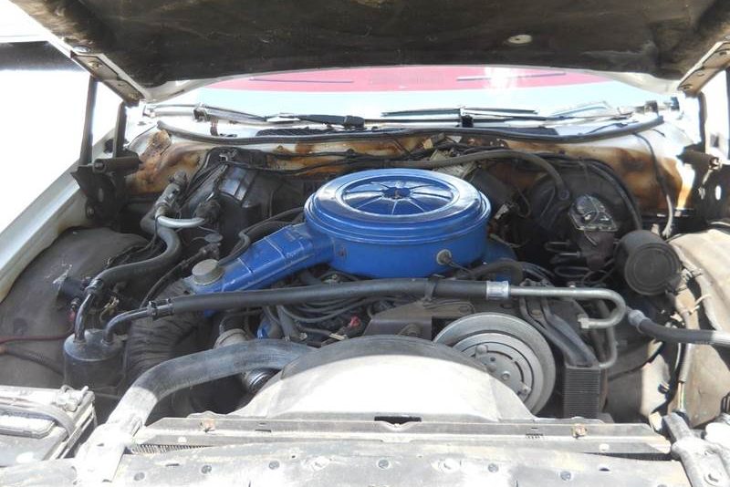 Nice car but did you say this car has “High Options”? Crank windows and a radio delete are not what anyone would call high options. The interior, nice as it looks, is not the deluxe interior that was offered on this model. It’s even missing the bumper upgrade package. The 460 was available which this high option car also does not have. Pick pick pick. Just kidding. I like the 2 Lincolns behind it too.
