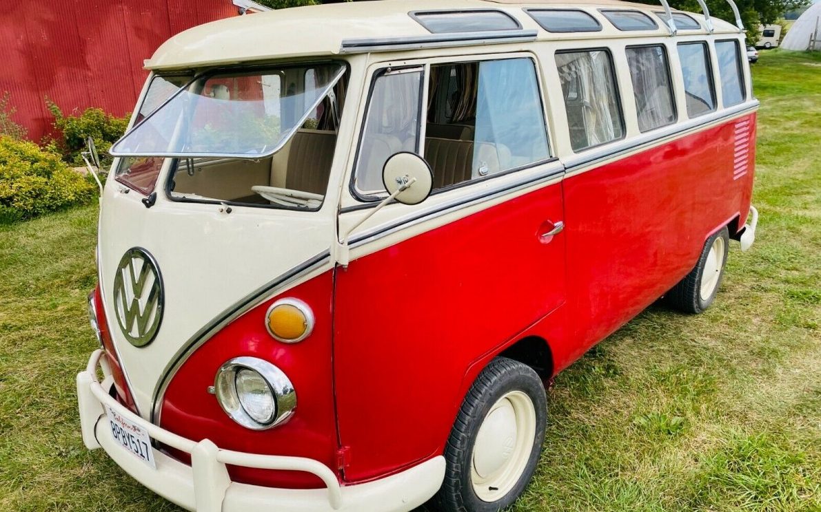 The seller suggests, ” This bus simply looks amazing“. I’ll admit it’s clean and straight but the white wall tires, white wheels, and white hub caps must be an acquired taste. It would be nice to know how many different color combinations were available with this generation bus, it seems that the overwhelming majority are red and white. The seller adds, “Some things on the bus that are not perfect, door edges and door seats, door latches on barn doors must be carefully closed in order to keep closed, some previous bodywork is easily seen in the paint and front doors“. Nevertheless, this Type 2 shows very well. It comes equipped with a non-leaking, folding canopy moon roof and flip-out windshield panels.