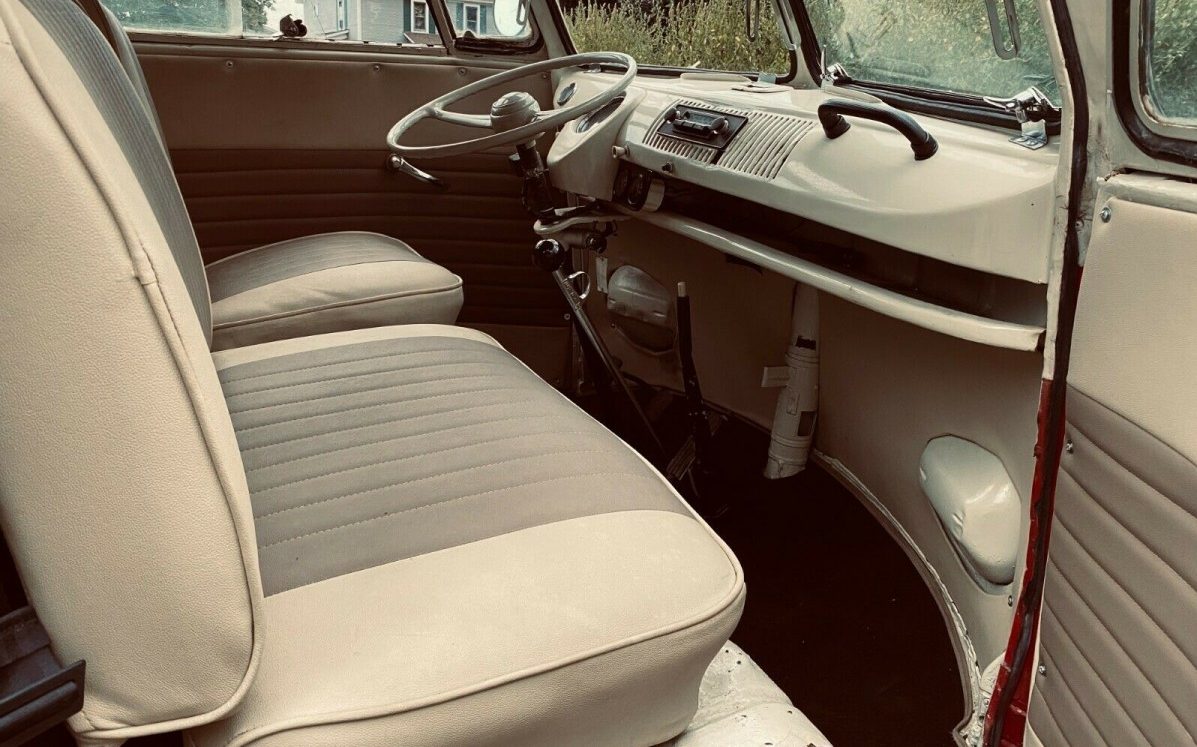 Now back to that “very quick” matter. The seller has swapped the original hamster wheel for a 170 HP, 2.1 liter, four-cylinder powerplant. There is no elaboration regarding the engine’s internals but the seller states that he had a VW-only specialty shop handle the engine upgrade. He was looking for a quick daily driver and it sounds like he was successful in his endeavor. The seller adds, “This little bus is a blast…and honestly it’s very fun to drive!” Additionally, steering, electrical, and suspension components have been replaced to enhance the driving experience. A four-speed manual transaxle channels that 170 HP to the rear wheels.