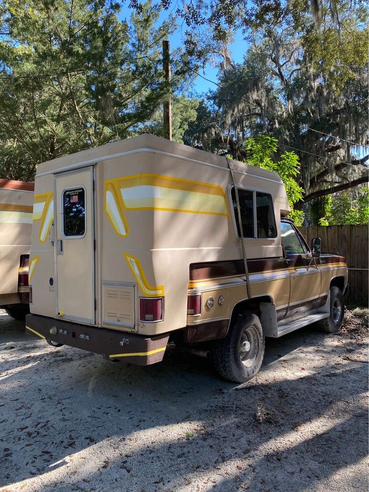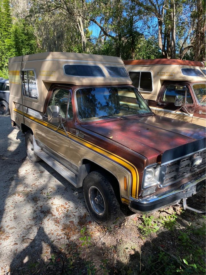 The paint condition looks quite tidy, with no widespread sun fading or other easily noticeable flaws. The same can be said for the decals, which are key to setting a genuine Chalet apart from other models. The seller has done a nice job of updating this truck for usability without going overboard, noting he has converted it to Sniper electronic fuel injection, and that’s he’s also added Warn locking hubs. There’s also a custom rear bumper, and period-correct side rails. The seller doesn’t disclose whether the truck has been in Florida all of its life, but it does appear to be rust-free. Throw in the fact that it looks like it’s parked in a campground with at least one other Chalet, and it seems likely that this one has been looked after.
