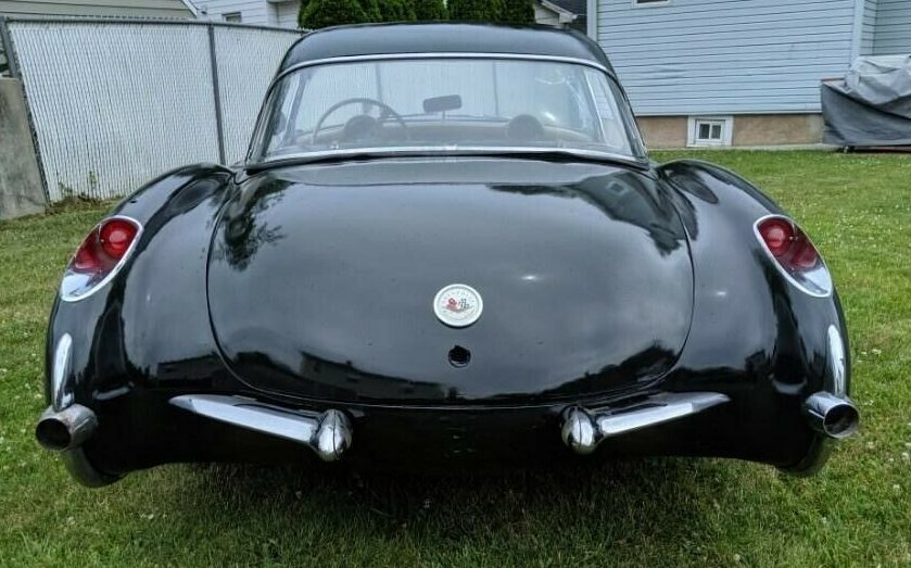 The seller is not big on the exterior appearance of his Corvette. He says, “the car needs a restoration, in my opinion, it looks much better in pics the black paint is not that nice in person…” He gets points for honesty, that’s for sure. Looks can be subjective so this is one of those instances where a thorough, in-person inspection, is probably warranted. Admittedly, this Chevy probably would look better in its original Cascade Green hue (1 of 290) but the images in black present pretty well. The finish has a notable reflection and the body panels appear to be well aligned. The trim seems to be mostly in place though the stainless that is supposed to outline the coves is nowhere to be found. There is no mention of the integrity of the underside, another area worthy of investigation.