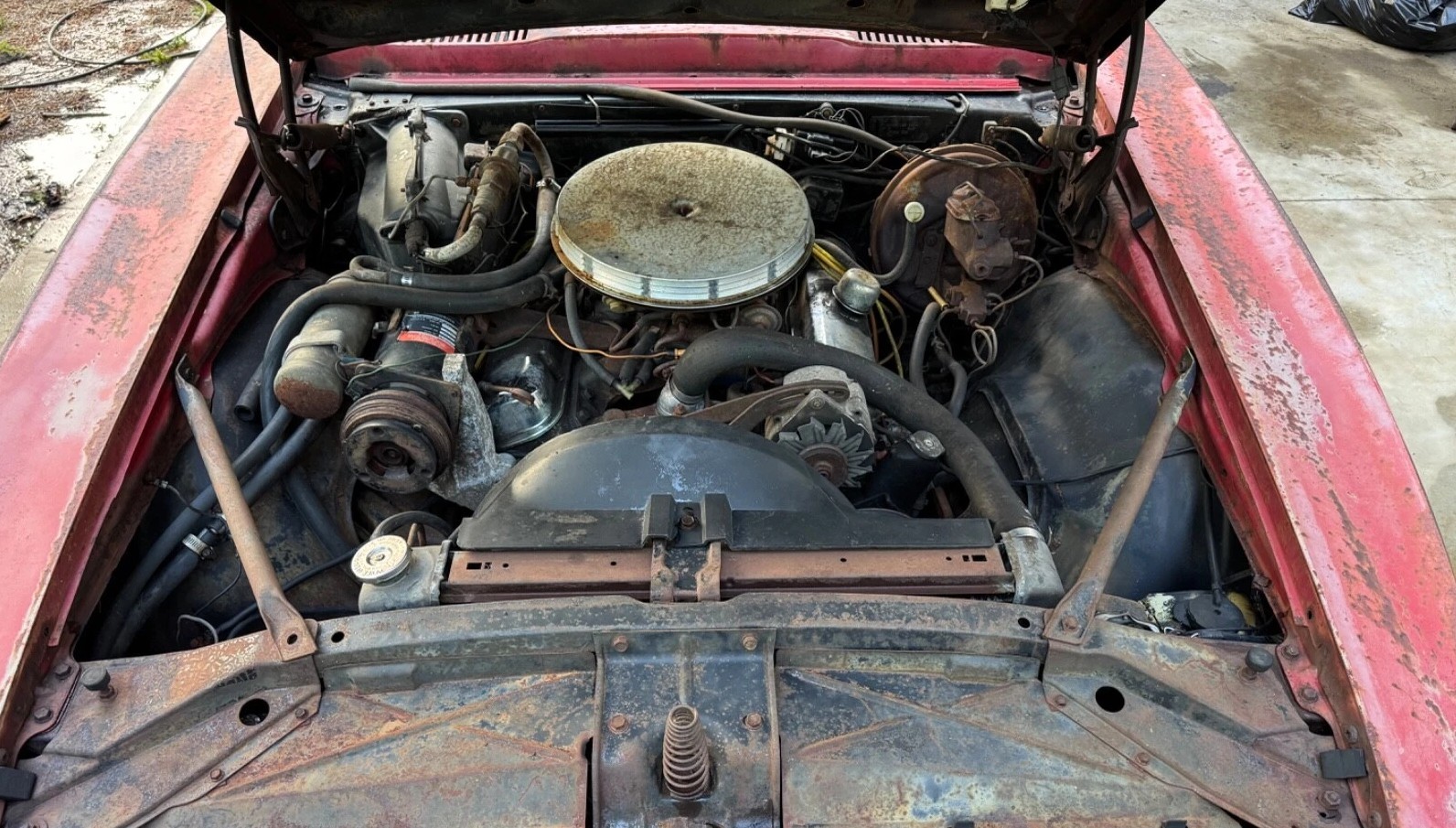 This must have been one very nice Firebird when it was new. I can imagine the red paint and vinyl top and that parchment interior. I’m sure it was really quick too with the 400. It’s sad to see it like this but mqube someone will restore it to its former glory.