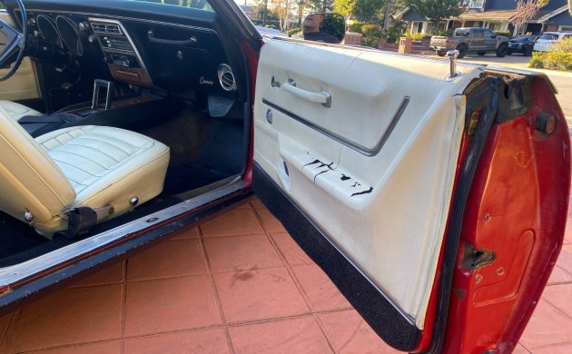 The first owner didn’t focus solely on outright performance, equipping this Camaro’s Deluxe Parchment interior with some interesting, relatively rare options. These include a folding rear seat, which was chosen by 7,384 Camaro buyers in 1968. Other rare features include a tilt wheel (5,294), a speed warning indicator (2,344), fiber-optic monitoring (1,755), and the AM/FM stereo radio “Multiplex” option, which was chosen by a mere 1,735 buyers because it added an eye-watering $239.15 to the Camaro’s sticker price. Throw in air conditioning and power windows, and this Convertible can be considered fully loaded. The seller indicates that the speakers for the Multiplex system are intact, but that someone swapped the original radio for an Alpine radio/cassette player. Sourcing a correct unit and any associated hardware is unlikely to be cheap, but it would be worthwhile as a long-term investment. The interior’s most pressing cosmetic shortcoming is the badly cracked door trims. The images are limited, but it appears that the remaining upholstered surfaces, the carpet, dash, and console, are in good condition for a survivor of this vintage.