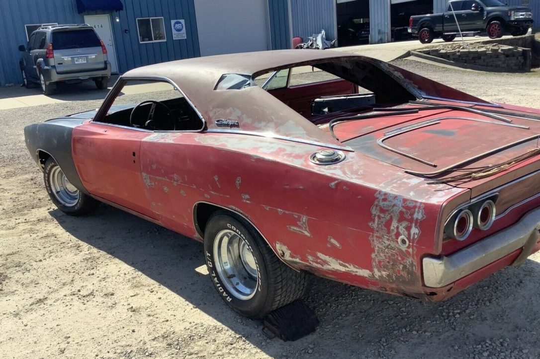 As is often the case with Chargers from this era, time has not been kind to this classic. It rolled off the production line wearing Code P Red paint with a Black vinyl top and Black tail stripes. The vinyl is long gone, while there are only faint signs of the stripes. It is no surprise that this car has rust issues, but they are far from the worst that I have seen in a Charger. The lower rear quarter panels have rot, and the buyer will need to choose between patches and total panel replacement. The former will be cheaper, but fresh steel would be an approach that should minimize the chance of future issues. The doors, lower fenders, and rockers look pretty sound, but there is the usual rust that develops under the vinyl on these classics. The seller indicates that this is repairable, but his long experience leads him to suggest that replacing the roof skin would be a better approach. The frame rails look pretty good, with only a single repairable spot in the passenger side torsion bar cross-member.