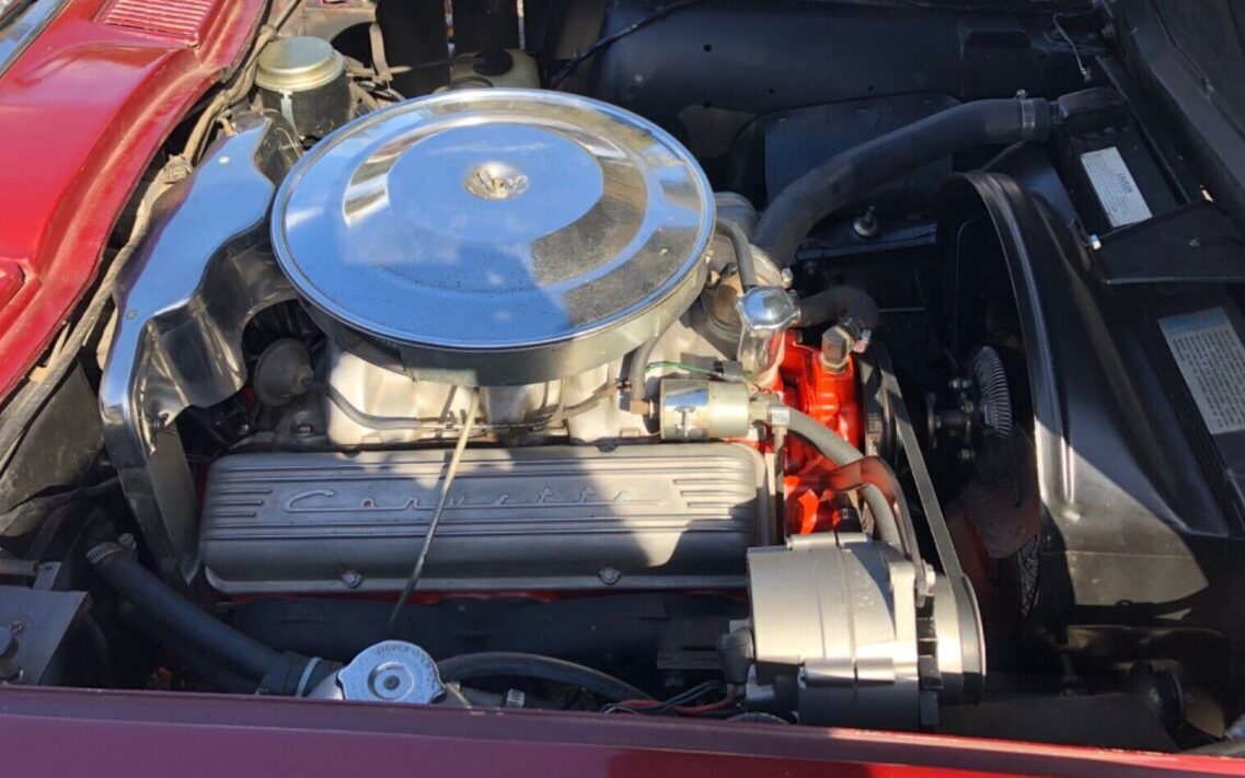 The seller’s list of stamping numbers correlates to the claimed 350 HP 327 cid (5.4L) V8 with transistor ignition except the alternator (slightly different but correct era) and it would be nice to see the engine stamping to validate a 350 HP suffix such as HV (350 HP, manual transmission, transistor ignition). Thanks to CorvetteActionCenter for some details.