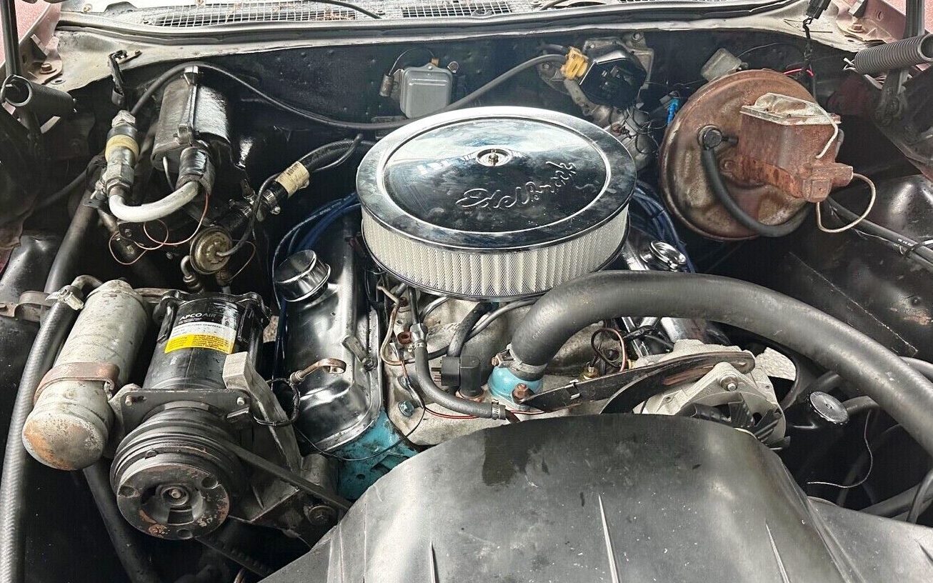 The numbers-matching original 400 cid (6.6L) V8 marked the only GTO displacement in 1969, with default HP of 350. Optional engines made as much as 370 or buyers could actually downgrade to a 265 2-bbl 400, according to Hemmings. The cheesy aftermarket air filter housing tops a replacement carburetor and intake manifold, often the result of backyard hot-rodding or tossing the baby out with the bathwater when a factory carburetor needs work. That’s common but disappointing on a highly original ride like this GTO. Credit the owner for keeping and offering the original factory parts!