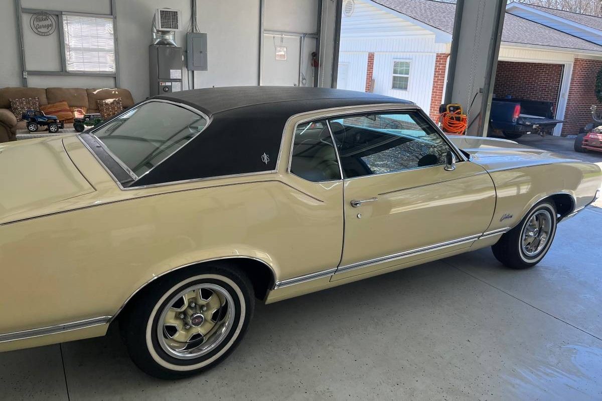 Judging by the snap on cap SSIII wheels, the car probably came with wheel covers originally. Someone added the 442 decklid striping (I would assume side pinstriping too) which makes me think it has had a repaint. Pass side mirror is aftermarket. There’s a few things in the engine compartment that are not original, i.e. master and booster. I see flat ridged 1970 fenders, which are worth a mint by themselves, and overall it looks like a well cared for car, but I would not call it “all original” as the seller suggests. Bamboo is an acquired taste color though, which will probably limit potential buyers.