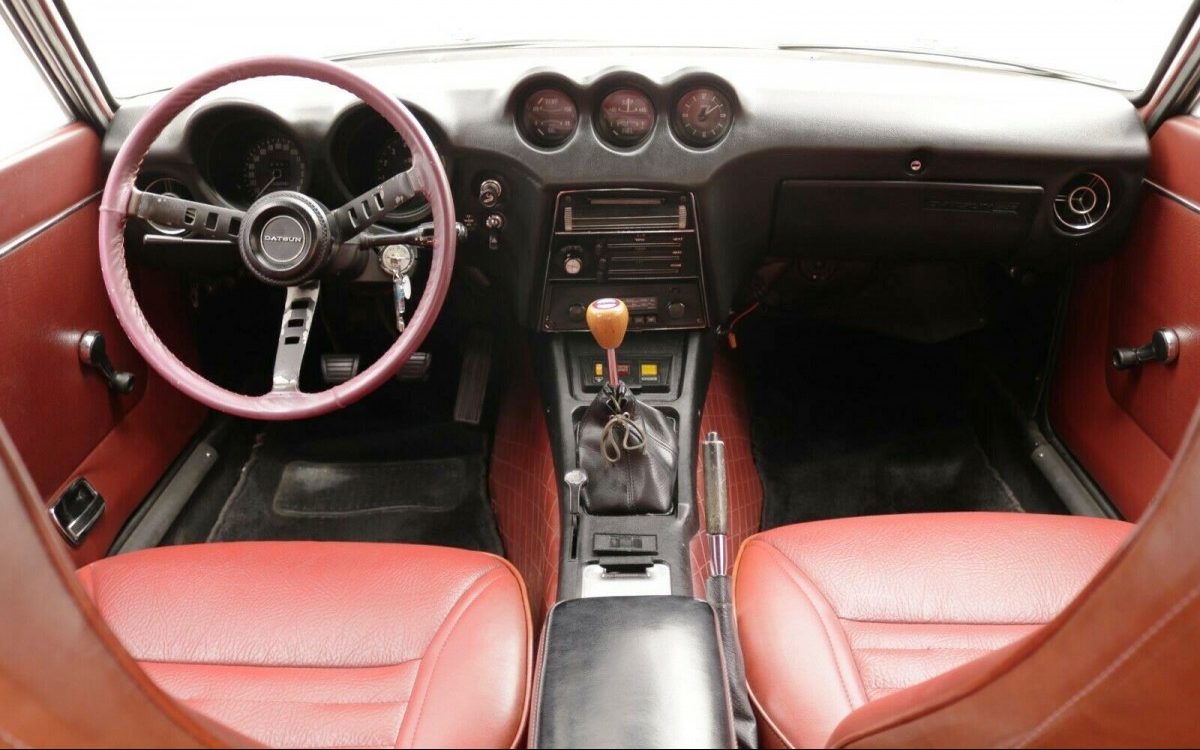 The plain white wrapper outside contrasts the racy red upholstery. Despite being white with a red interior myself, I might prefer a bolder paint color on this car’s body. There’s no hiding the sporting intentions of this Z24 240Z. The low seating position puts your posterior mere inches off the ground. Check out those nifty low-mounted door handles!