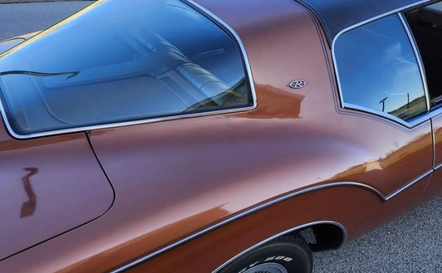 The original owner must’ve loved brown. The factory color is Code P, Burnt Coral, which was one of three exclusive colors for the 1973 Riviera. This Buick has obviously been garage-kept that past 52 years because the original factory paint looks very shiny and presentable. The body is straight, there’s no rust, and the chrome, rubber trim, glass, lenses, and badging look very good. Although Mitchell was strongly opposed to offering a vinyl roof to his sleek design, he was overruled and I read where 80 percent of the ’71-’73 Rivieras were ordered with vinyl roofs. The year 1973 also saw the big, bulky 5 mph impact front bumper added which hurt the car’s sleek styling, and the rear boattail point was actually reduced, smoothed out, and had a rubber strip added. Talk about an expensive one-year-only styling cost!