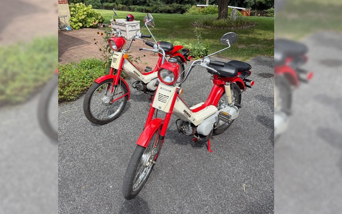 These are neat!! To see a matched set with very similar miles ( His and Hers?) Is a real treat. As a kid in the late 70’s, at least where I grew up mopeds became a thing. I think with the gas issues and what not, people went for mopeds as a local run about town option. Why fire up the family Oldsmobile whos 455 will suck down a gallon of gas just starting the thing, and use something like this? We had two Moto Guzzi Robin mopeds ( 1978 ?) A blue one and an orange one, one was my Dads ( barely used it) one for my brother ( used it all the time). But I seem to remember friends of my Dads getting them too in order to just ride around town etc. I can’t remember how fast they went, but it wasnt very fast. I think they only had about 1 or 1.5 hp. Anyways enough of me rambling. These are a great set and hope they goto a good new home.