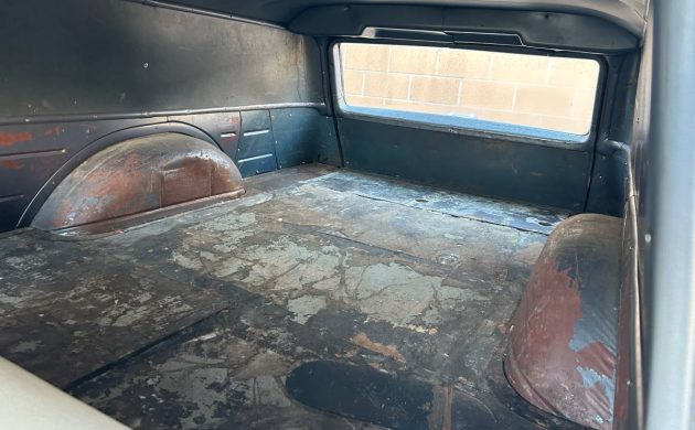 There’s no included image of the 283 CI V8 engine, but the seller says it’s a long-ago swap, still wearing a generator, having replaced the original 235 CI, in-line, six-cylinder motor. The generator comment makes me think it’s probably an original style, stock motor. Unfortunately, there’s no mention of running or driving characteristics (other than a ‘runs drives‘ exclamation); all operations that utilize the three-speed manual transmission (three-on-the-tree). Since the engine room is not photographed, let’s take a look at the inside cargo area. It’s a blank canvas and is in workable condition; it just needs to be finished.