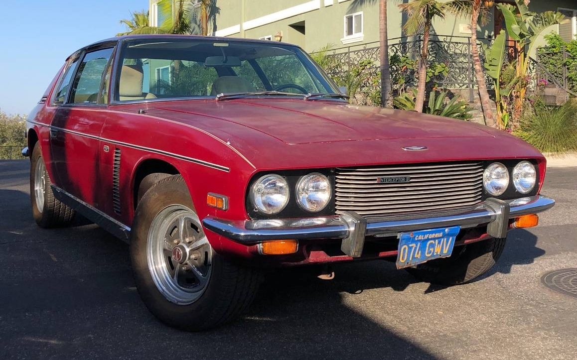 The interior appears to be past the point of some simple cleaners and moisturizers, with the limited photos showing tired upholstery that is beige in color and quite dirty. You can just barely see it here, but the leopard spot floor mats are a very Hollywood-appropriate “upgrade.” Jensen Interceptors are at their most desirable in Series 1 form, but Series 2 cars aren’t a bad way to go, either, if you want classic British style and raw American power under the hood. The question is, with so many coming out of the woodwork, do you need to rush off to buy one?