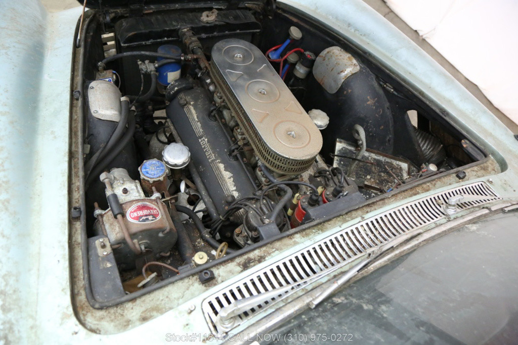 The proportions right away tell you this is a slightly oversized Ferrari (by Ferrari standards, at least) but it’s also a true GT car, featuring a lusty V12 engine with triple Weber carburetors paired to a traditional manual transmission. Throw in the Borrani wire wheels and a trunk with room for a full set of luggage and you have a car that looks every part of a Ferrari with greatly enhanced utility. Despite its years off the road, the 250GTE has emerged in nicely preserved condition, with no obvious signs of major rust or poorly repaired prior accident damage. Of course, this always begs the question as to why it came off the road in the first place, but this being California, there’s seemingly a multitude of significant cars that simply get parked and forgotten.