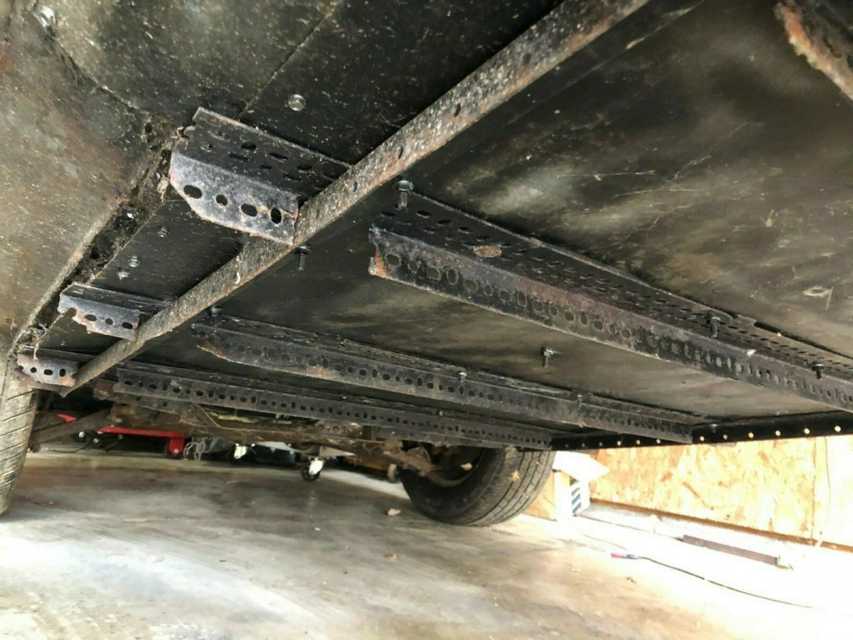 Well, it’s functional, I suppose! The seller notes that while this may have addressed the rust issue, these floors are not even close to factory spec. It looks like something your local hardware store would sell you with an extremely puzzled look on their faces as you explained the materials are for your Porsche. The seller further notes that the previous owner added a support that was bolted to the rear torsion bars, so there’s a fair amount of engineering here to unravel.