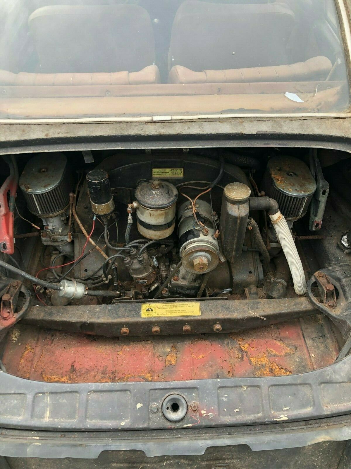 The motor turns over but the 912 is literally hotwired at the moment with the ignition lock removed. This is due to the keys being lost. The previous owner must be a hoot to hang out with, because it seems like no amount of potentially vexxing scenarios prevented him from continuing to drive the doors off of this 912. The engine cranks and sounds like it has compression, according to the seller, but it does not have spark.