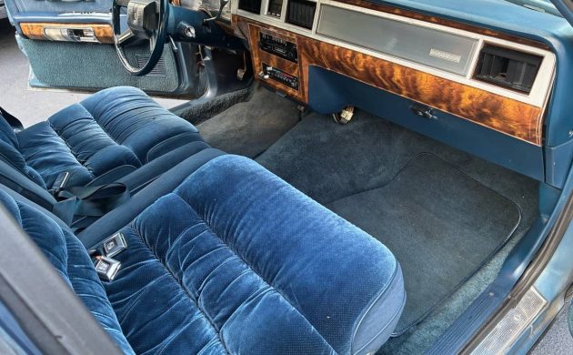 The interiors were still fairly loaded with standard equipment, from deeply stuffed seats to faux woodgrain trim that did a commendable job of looking fancy. The interior design underwent a few updates over the years, with the most significant one for 1986 being the retirement of the 8-track stereo in favor of a single DIN head unit. Loads of standard power features and plush carpeting certainly made the Grand Marquis feel luxurious, even if the Lincoln Town Car was still top banana at the time. The seller’s car looks to have been cared for based on the condition of the interior surfaces, and likely never saw much backseat use.