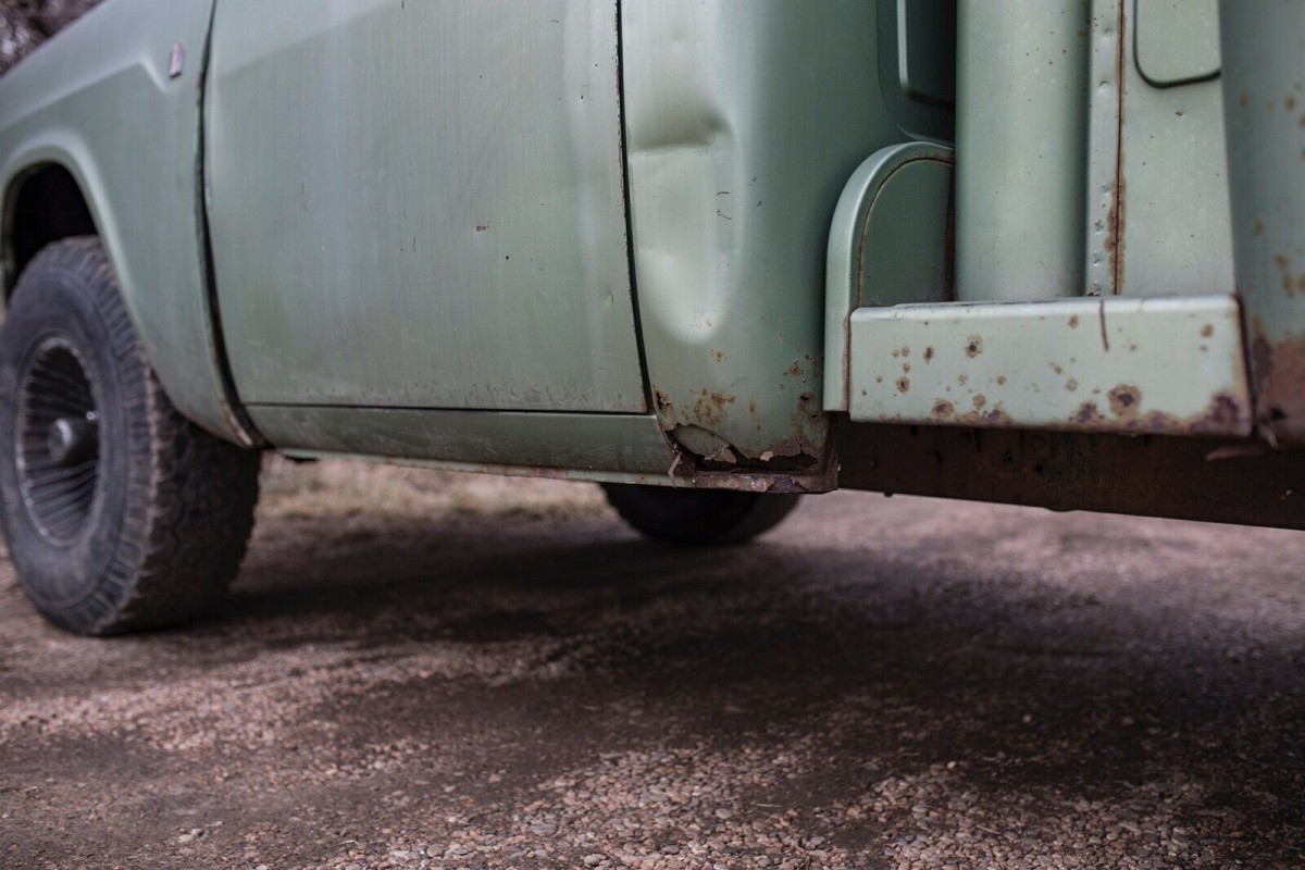 If you look carefully, there isn’t much rust. Rockers are solid. The rust came from dripping rain under the rubber floor mat, and moisture laying in the rear cab corners where dirt collects.