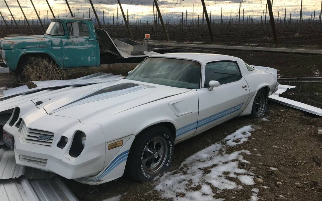 FROM 6/4/18 – We found this Z28 Camaro on a hops farm where it had been parked since 2004. We had big plans, but with three projects in the shop, we need to cut a few loose. Apart from the rims, it’s all original and we haven’t found any rust through so it should make for a good project. It’s listed here on eBay with a $0.99 starting bid and no reserve!