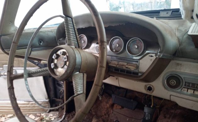 The car’s 410 cubic-inch V8 runs, but a new head gasket is likely needed. This automobile has Edsel’s signature pushbutton automatic tranny with the controls in the middle of the steering wheel (a feature that was gone in ’59). A complete extreme makeover of this Edsel is needed, but some of the photos provided by the seller are of another car, and we’re not sure which is which. The seller is tossing in some spare parts to help get you started.