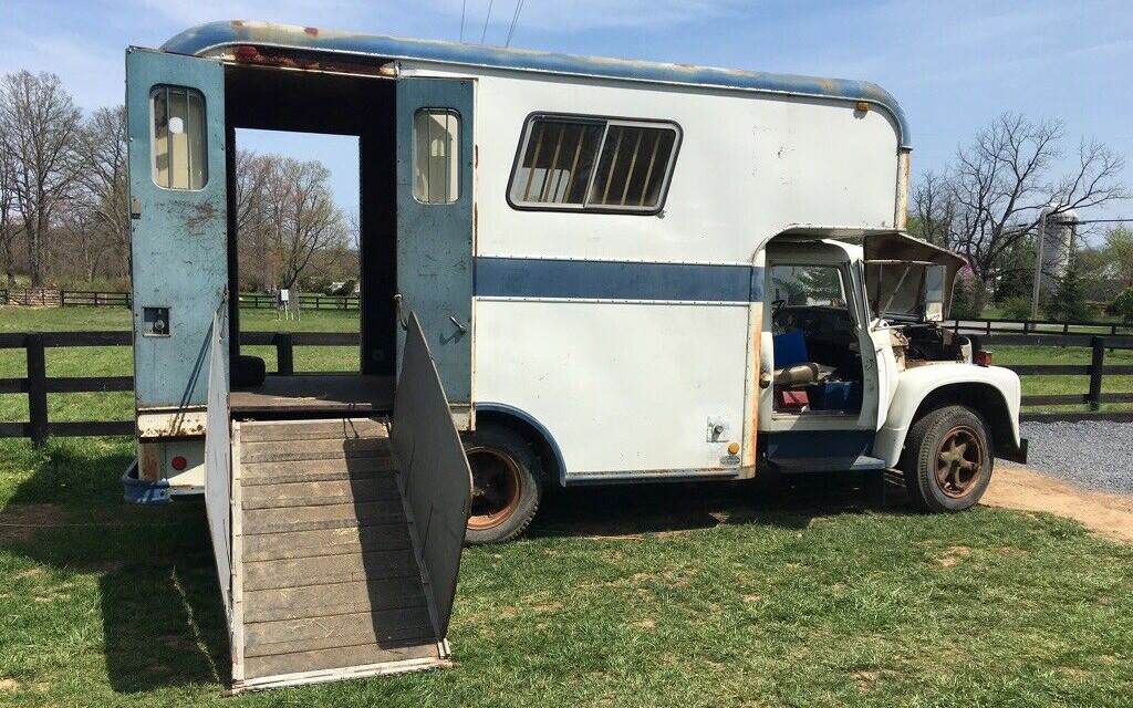 This 1970 International Loadstar horse hauler is one heavy-duty rig just for carrying two horses around. It can be found here on eBay in Boyce, Virginia. There is a $6,500 buy-it-now price and the current bid price is just over a hundred bucks. There’s a long way to go before this one leaves the seller’s property.