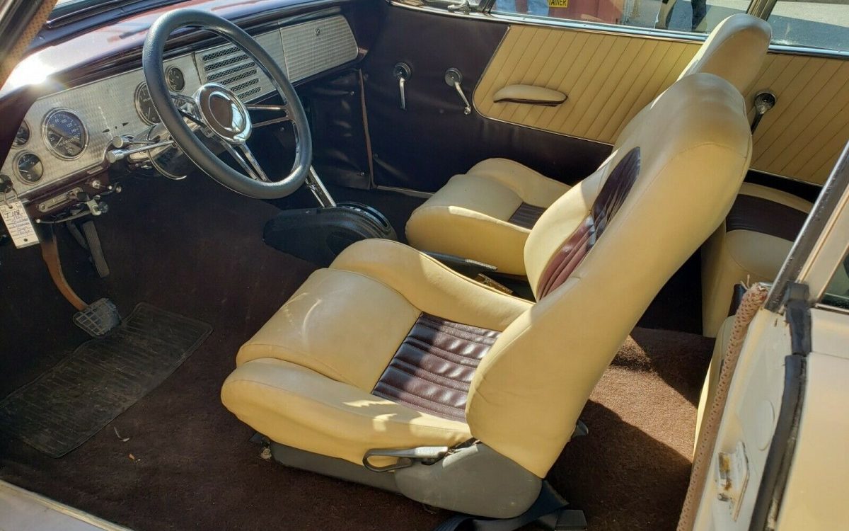 Some photos show no VIN tag at all, then the additional photos in the listing show a random Studebaker VIN tag from a ’53 Champion pop riveted on. No body tag either. I wouldn’t touch this – even if I liked the mods (which I don’t).