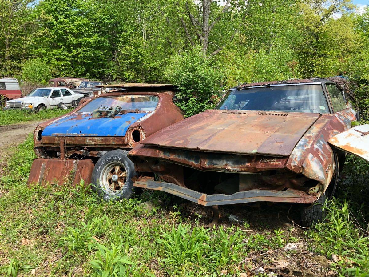 No , this is a typical old time New England junkyard ; they all look the same , and little, if anything is salvageable . Having lived here all my life, I can tell you the story of those Chevelles – They likely ended up there in 1979 ( 10 years average life span up here ), and then were picked apart for a few years by young kids who were trying to fix up their $300.00 first car , and after that , they sat ,and will sit because anything good was pulled years ago and the rest just rots away . The same could be said for the rest of the cars there -There’s no gold in old New England junkyards, just miles and miles of rust .They are best just to go and look around in, just don’t get your hopes up !