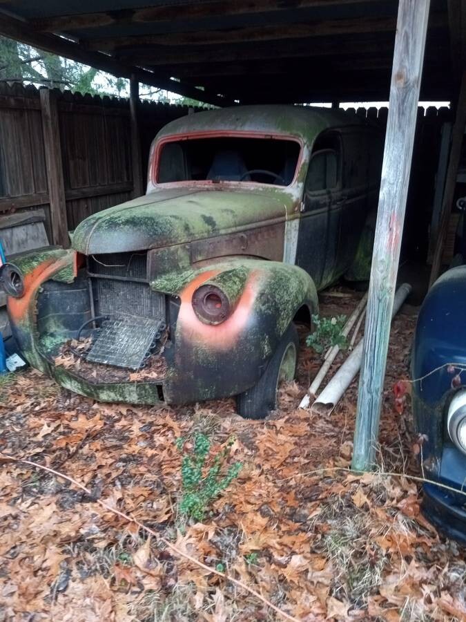 Rubbing eyes, a Willys that wasn’t turned into a drag car, much less TWO? Whoever had these held out as long as they could. Willys coupes were the #1 favored car for drag racing. Fact is, I never remember seeing one that wasn’t a drag racer. So that’s what they look like. Not sure of the future, and drag racing isn’t what it was 50 years ago, when these would have been snapped up. I hope someone saves them, but like asking for .59 cent bags of potato chips again. The panel truck, I think is a Chevy by the hood sides. ’47 came out with the AD series, so this has to be one of the last like this.