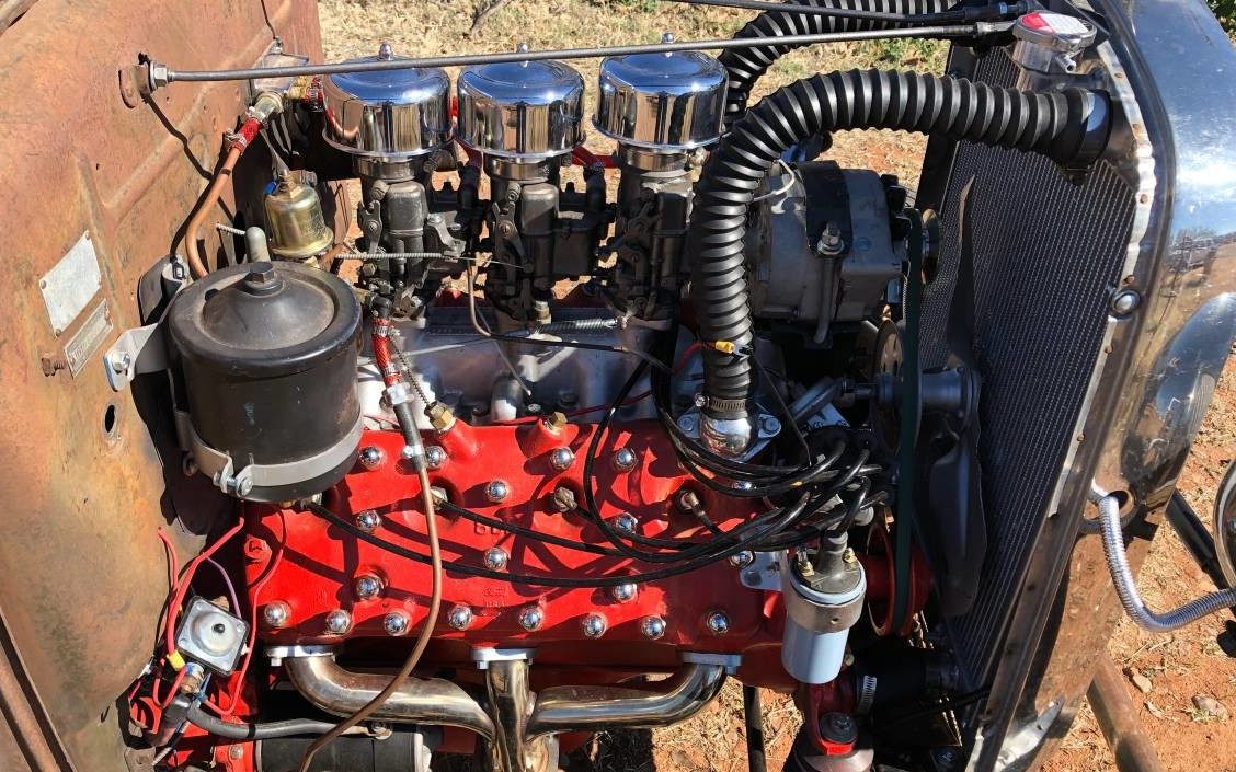 Manifold could be Edelbrock but the carbs look like the 97s. Had to build my own wiring harness on my ’32 as a kid. Lights and engine and you’re done, except for the fused wire direct from the battery to the radio mounted on the package shelf so you have tunes while you are making out… hopefully.