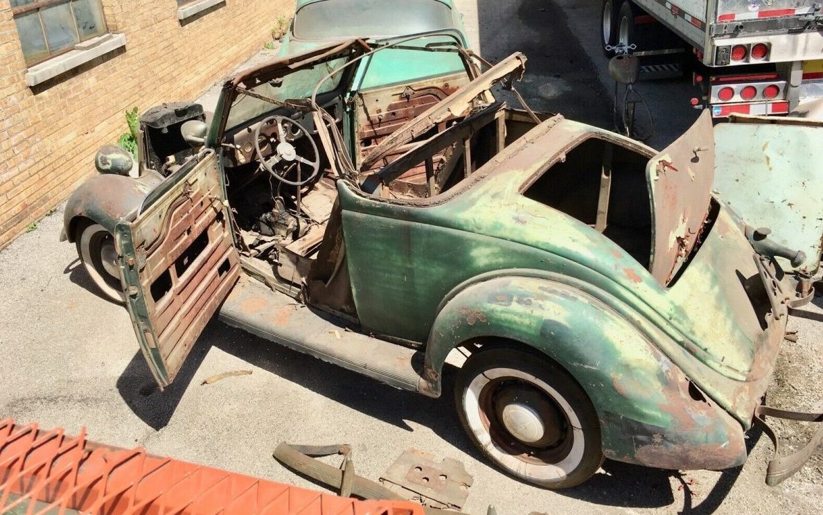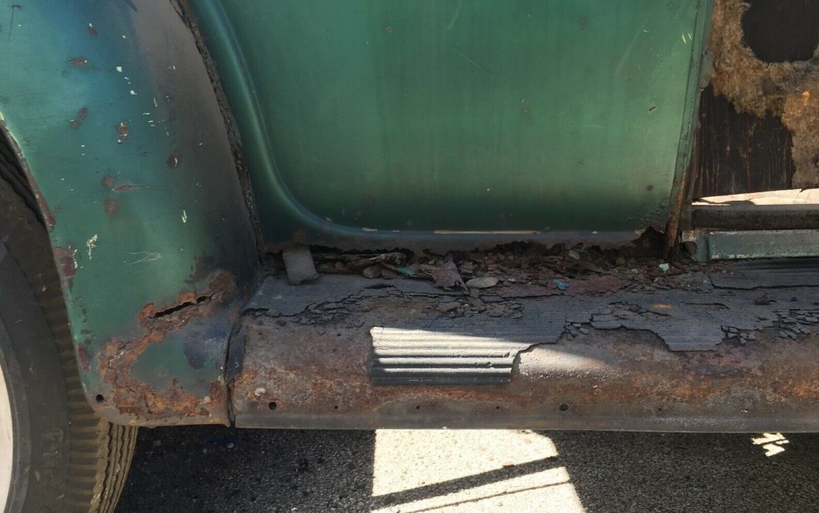 The seller states that the doors are “really nice” and the fenders “are solid” but much of the rest of the body, not so much so. The floor in the rumble seat is absent as well. Add to that, trim, lights and other necessary bits.