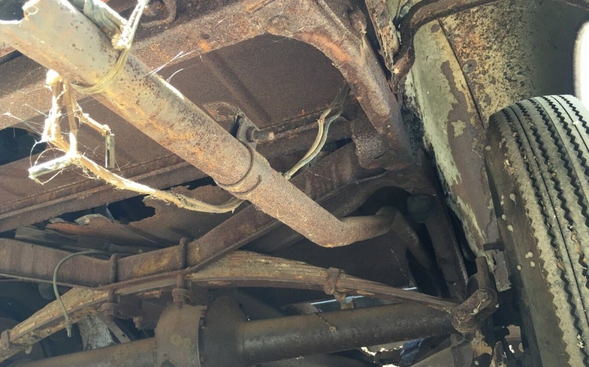 There is an image of the underside included. From what can be seen, the frame looks intact but the rotted out floors are obvious (the rope exhaust system hanger is a nice addition). There is a reference in the listing to boxes with additional parts, and some pictures of the parts too, so this Ford may not be as minus everything as it initially appears. In the parts stash, I did note a bumper, a generator and what looks like a headlight bezel. Beyond that, there’s really not enough detail to know what’s present and what isn’t.