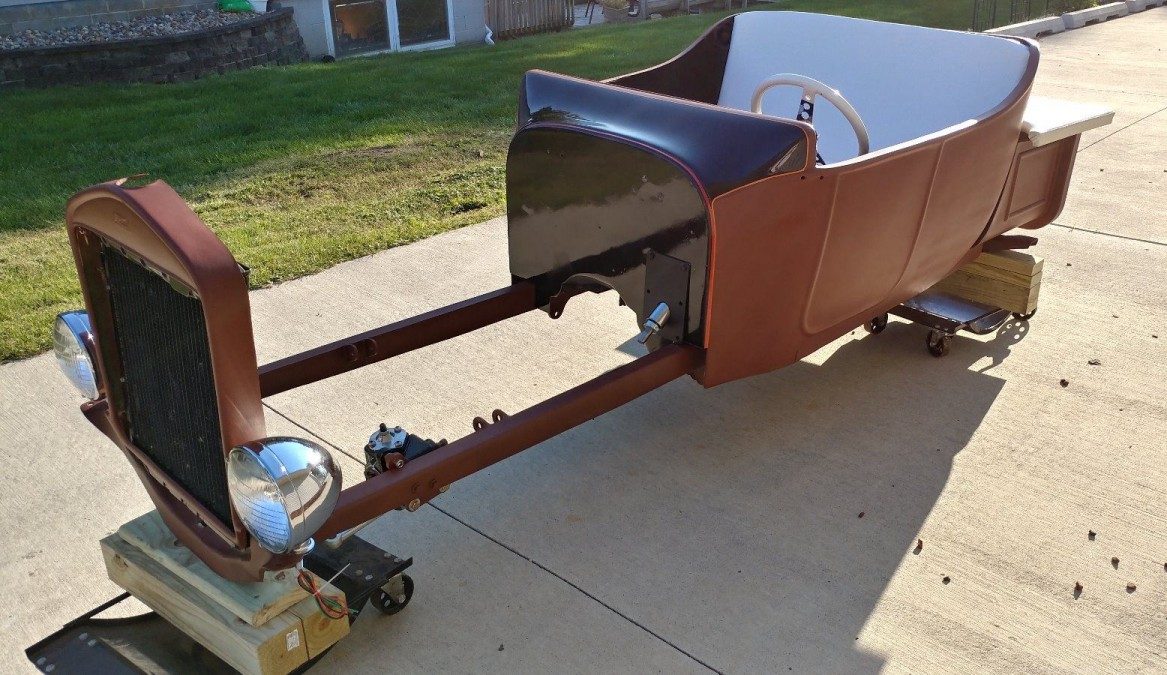 There is a nice left side shot on the Ebay posting and it loos like the body needs to be moved forward a few inches to fit correctly. I’m not a rod builder but it looks like there is too much overhang in the rear. If I’m correct then that would close up the gap between the cowl an radiator a little. But I’m not sure if that would be enough to make everything look correct.