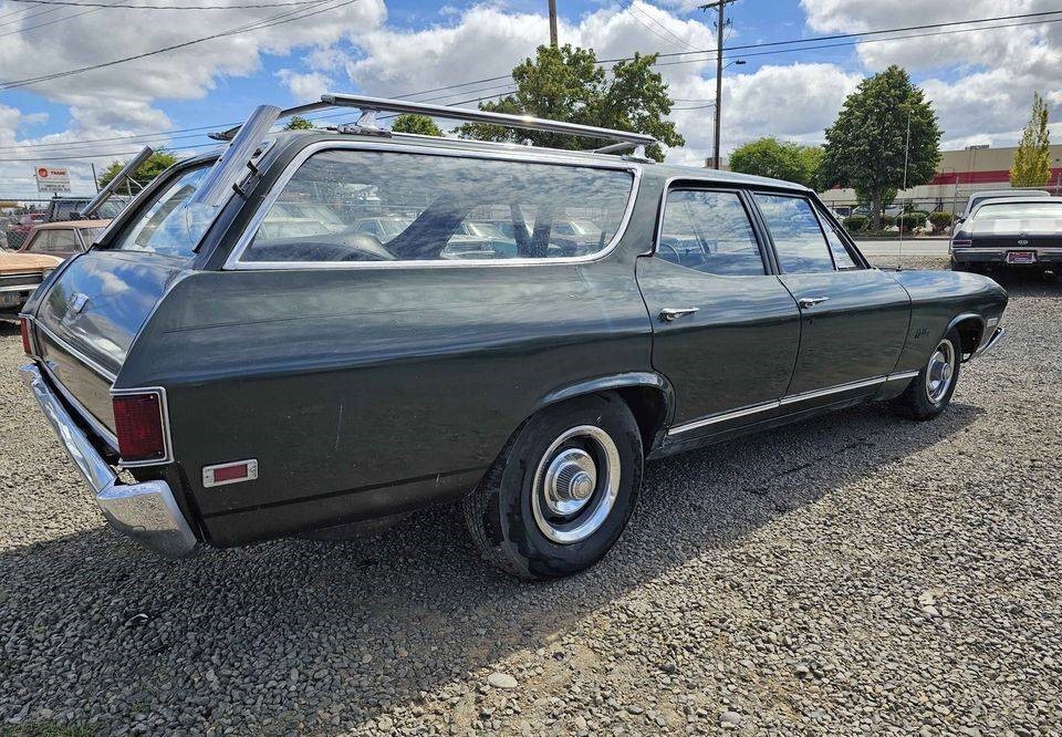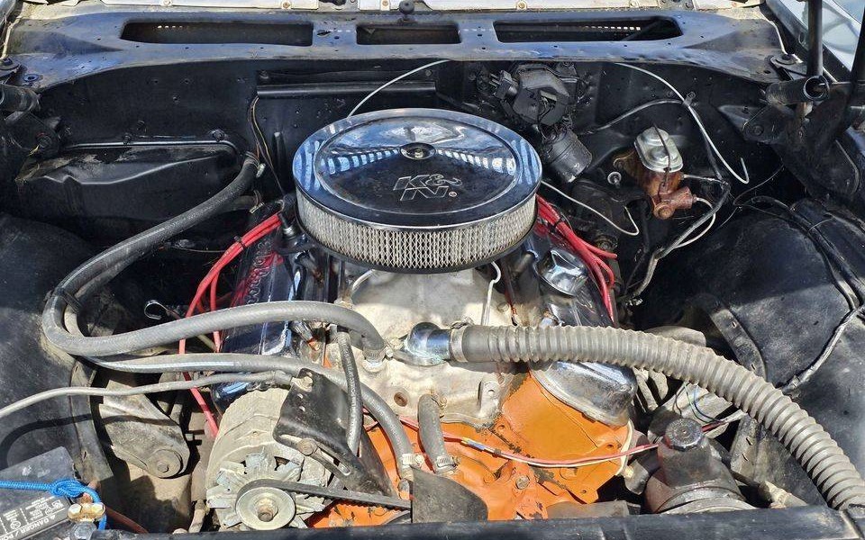 I’m just guessing here but something tells me the motor came from a late 60’s pick-up or blazer. A friend had a 68 Blazer with a 396. The motor was painted the same color as the truck which was the same color of gold as the motor in this. Maybe just a coincidence I don’t know but this isn’t the only gold big block I’ve seen and all of them were in the round body pick-up or blazer. Like I said, may very well just be a coincidence. With that being said, I would love to have this car! I am and have always been a wagon fan and this ticks all the boxes for me. Nothing like the sound of a big block chevy motor coming out of a set of headers and I just Happen to have a set that would fit this car. Some things I would fix but what fun is a car you can’t work on just a little? Oh well. Life being how it is right now, I probably won’t figure out a way. But a guy can dream right?