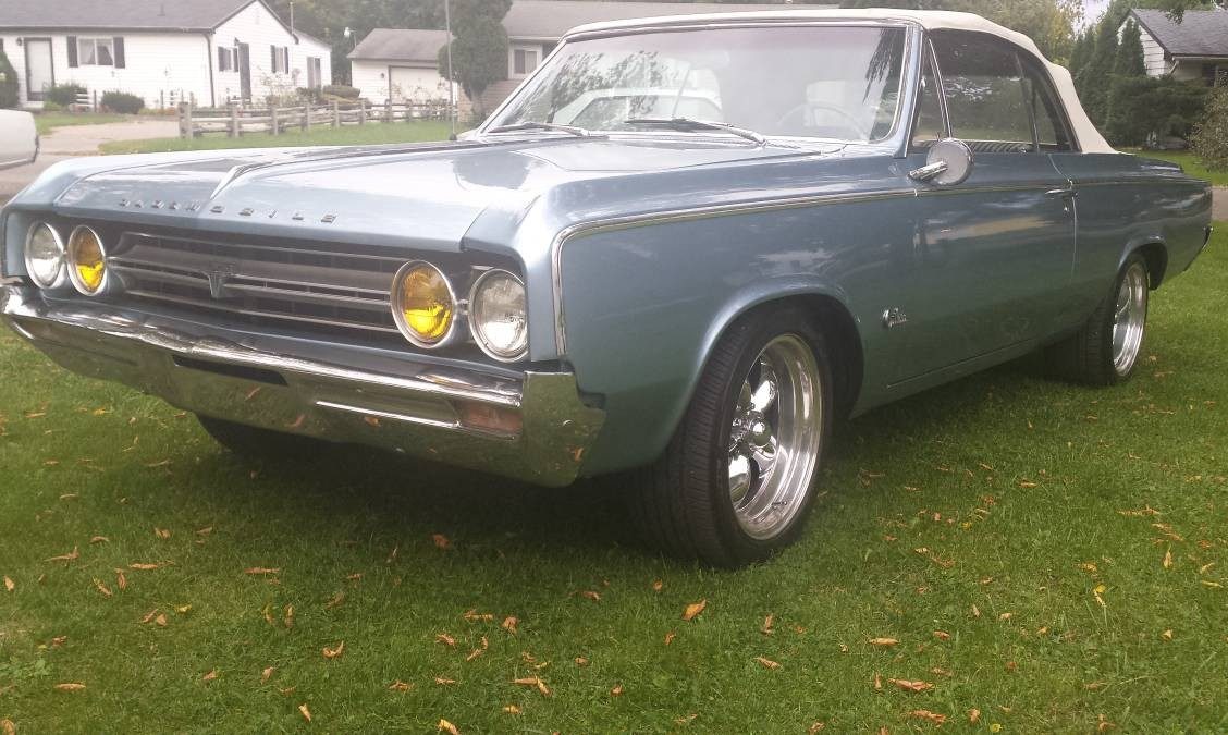 A 1964 Olds Cutlass Convertible with a 330 V-8 engine and fog lights.
