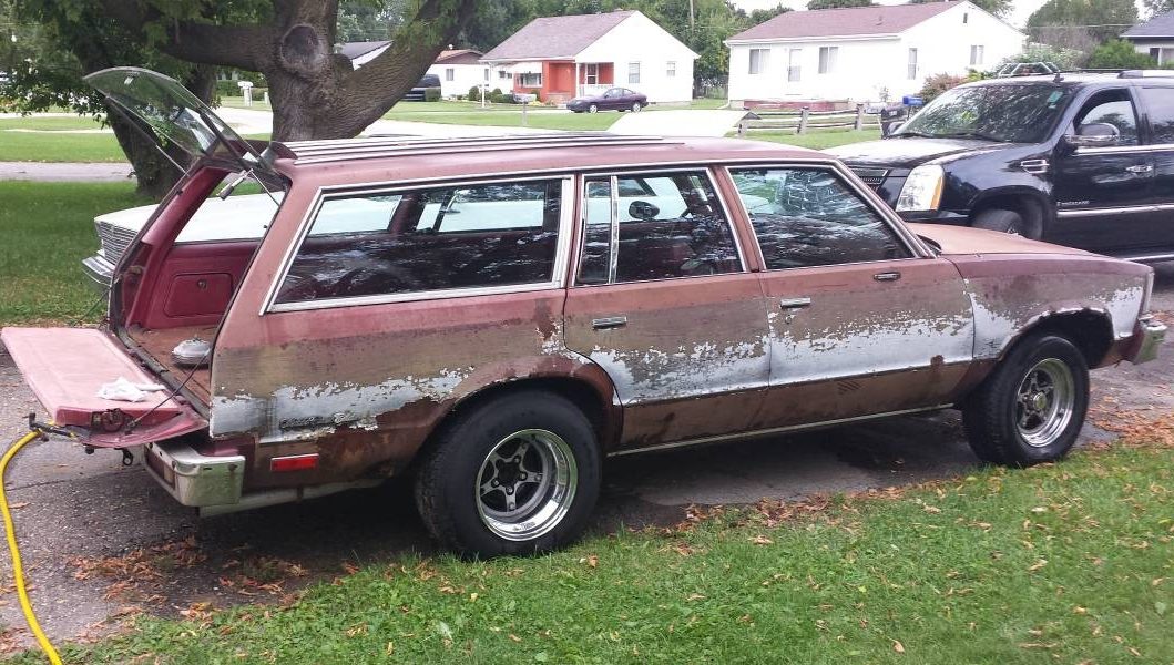 1978 Chevy Malibu Wagon with a 454 engine (may not be in it just now), headers, cam, Edelbrock aluminum intake 4 barrel carburetor, Turbo 350 transmission, PosiTraction rear end with 4.10:1 gears. Not the Family Truckster.