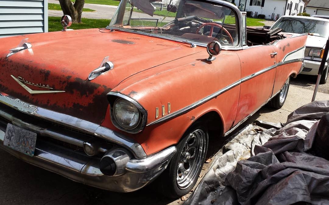 Most recognizable immediately to pique enthusiasts’ interests (and also the best photo of the lot) is the orange 1957 Chevy Bel Air convertible, above. It is a nicely patinaed ’57 Chevy Bel Air convertible, and that’s all we know. Little or no description is given as to the current drivetrain of the cars, whether each is running or not, and with rare exception, there is only one photo of each car.